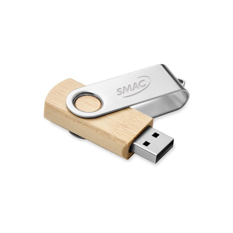Clé USB 2.0 de 16 Go avec boîtier en bambou et couvercle métallique de protection